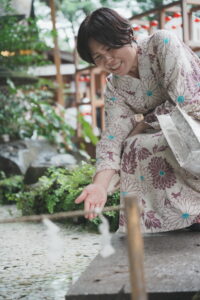 参拝にいらした方が楽しそうに人形流しをしている様子をよく見かけます。